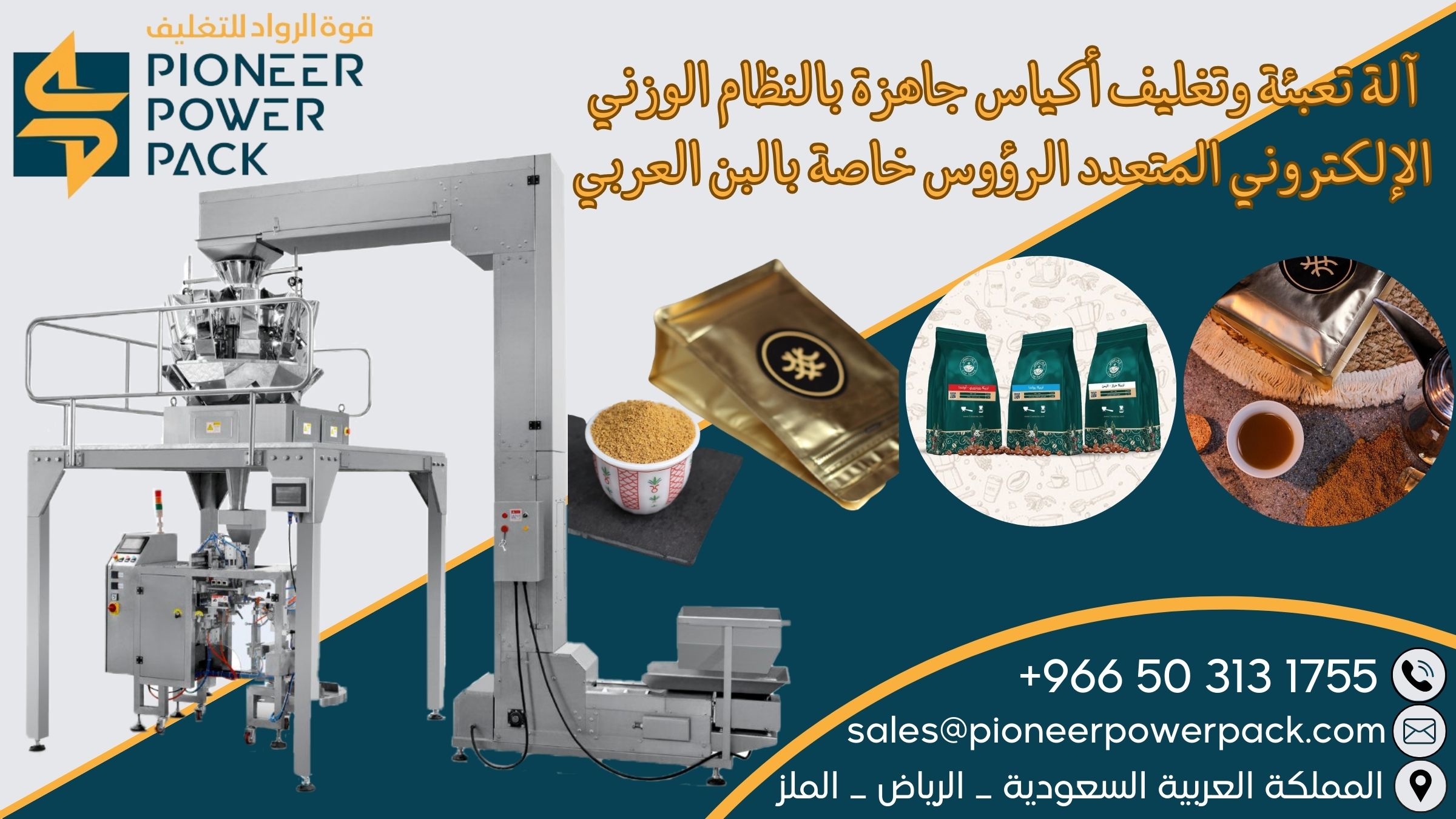 Arabic Coffee Filling And Packaging Machine In Ready-made Bags Using a Multi-head Electronic Weighing System